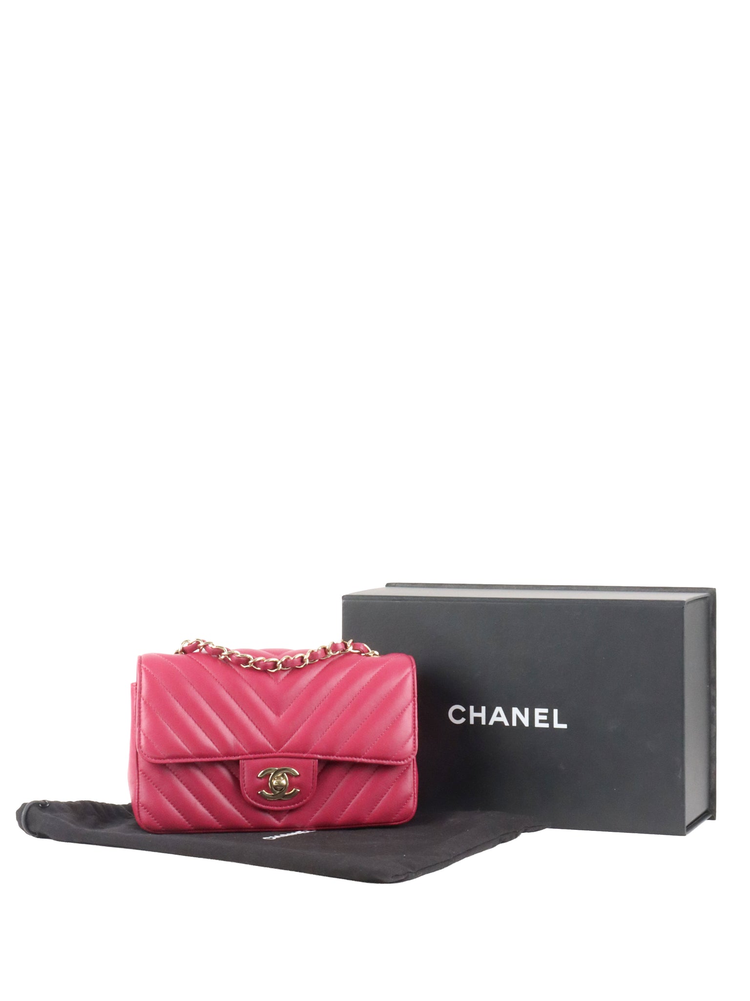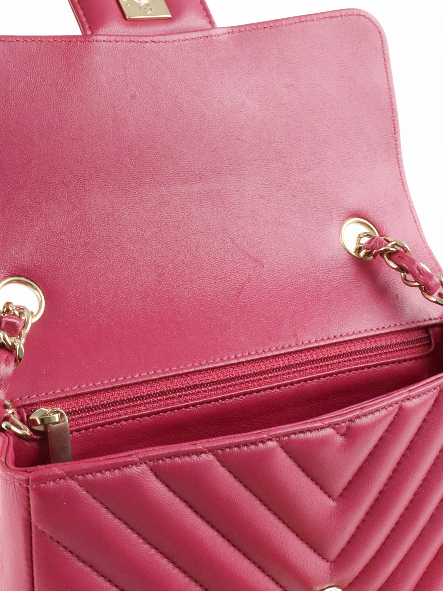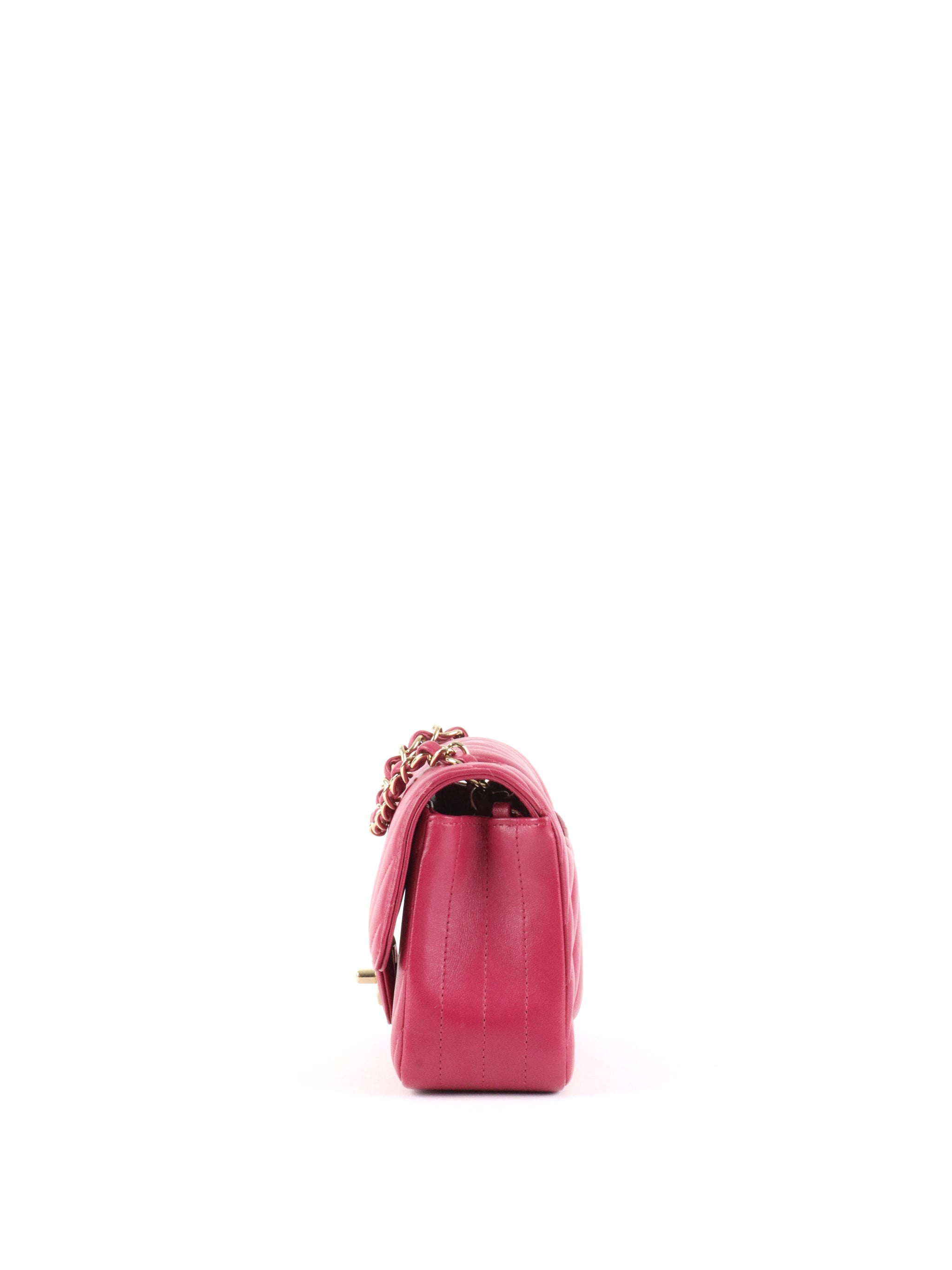 Chanel Dark Pink Lambskin Chevron Mini Flap Bag LGHW.