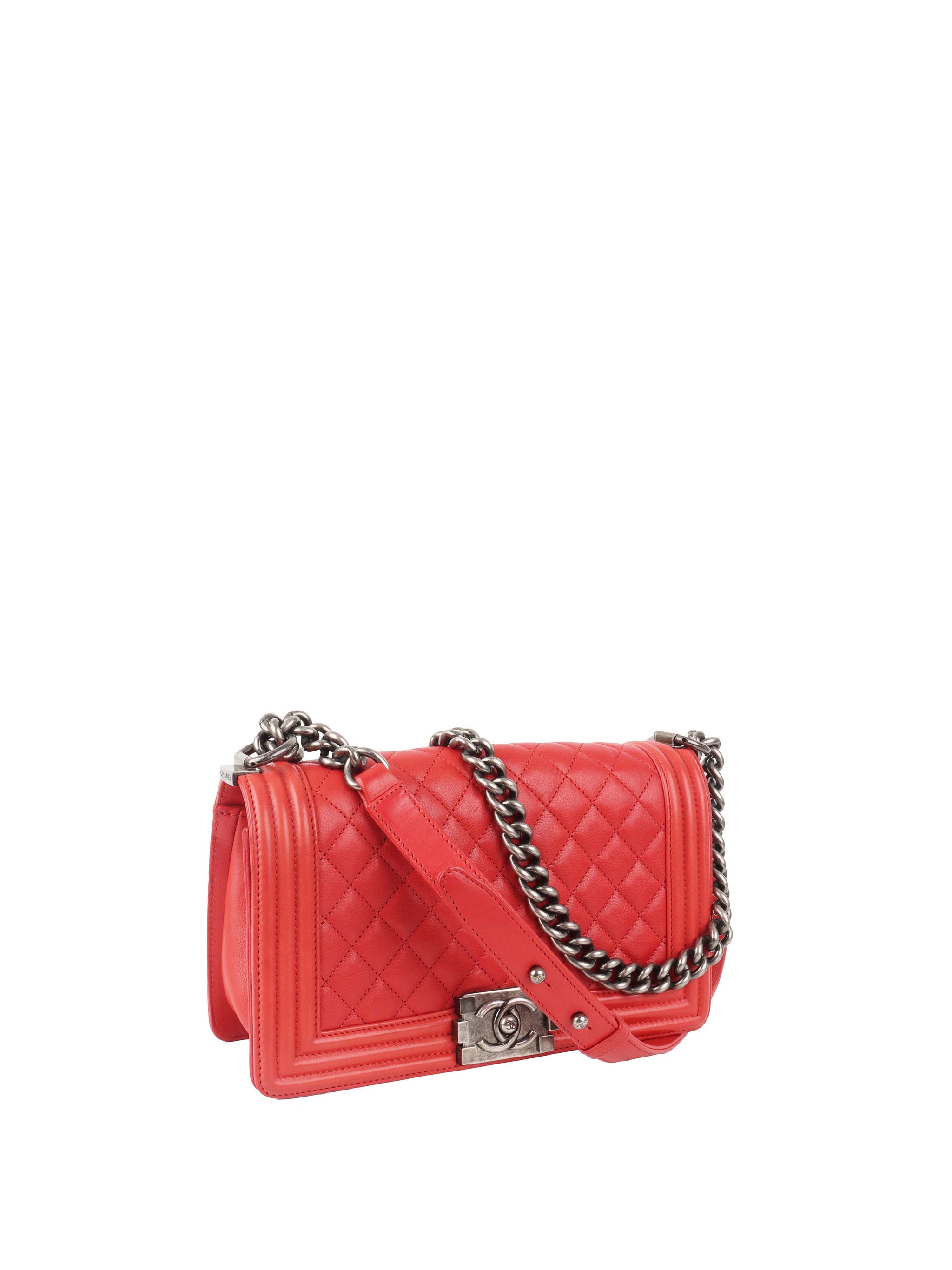 Description : Bold yet timeless, the Chanel Medium Boy Bag in vibrant red lambskin is a striking expression of modern Chanel elegance. Crafted from smooth, supple lambskin leather, this iconic design is finished with sleek silver-tone hardware, creating a contemporary contrast that elevates any look. The structured silhouette and signature Boy clasp make this bag instantly recognisable, while the medium size offers the perfect balance of style and functionality. Designed to be worn on the shoulder or crossbody, this piece transitions effortlessly from day to night and makes a powerful statement in any luxury wardrobe.