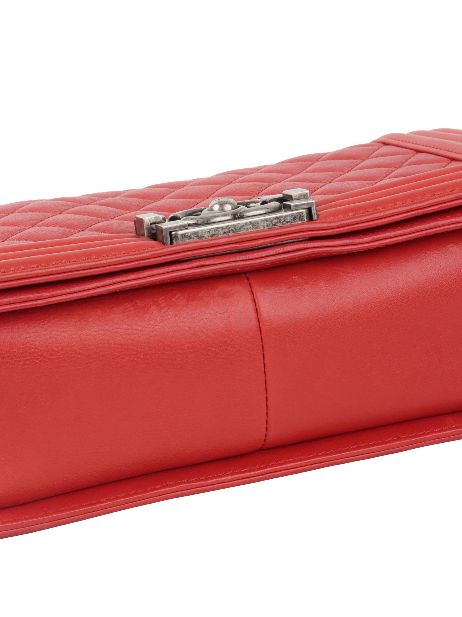 Chanel Red Medium Lambskin Boy Bag SHW.