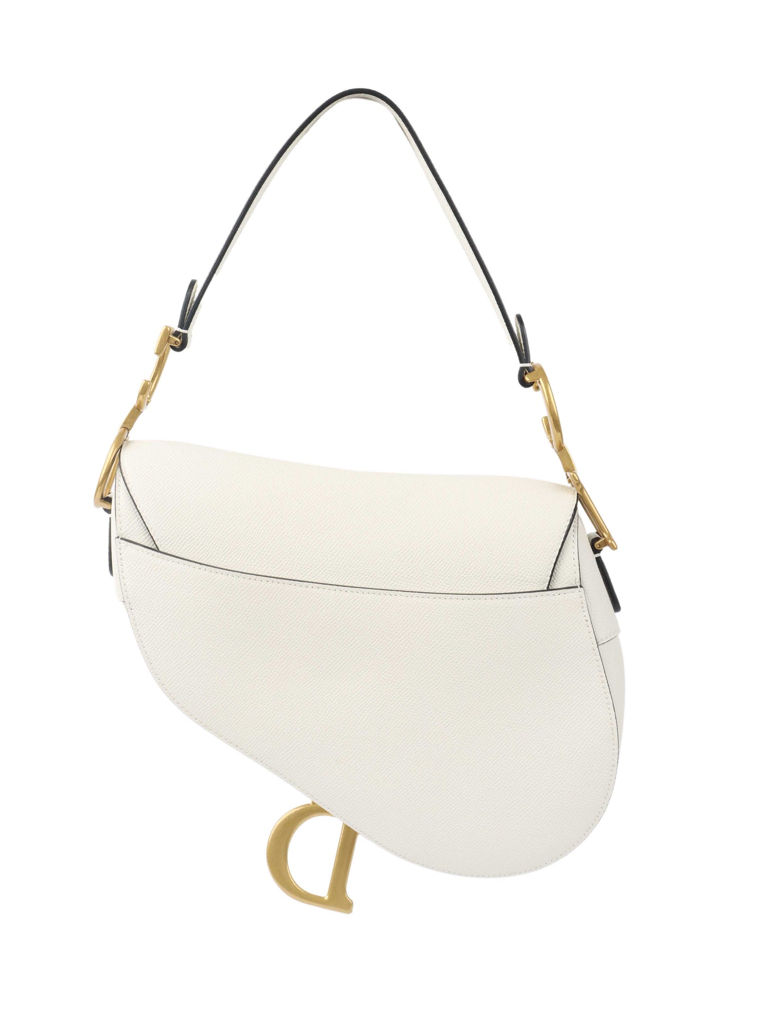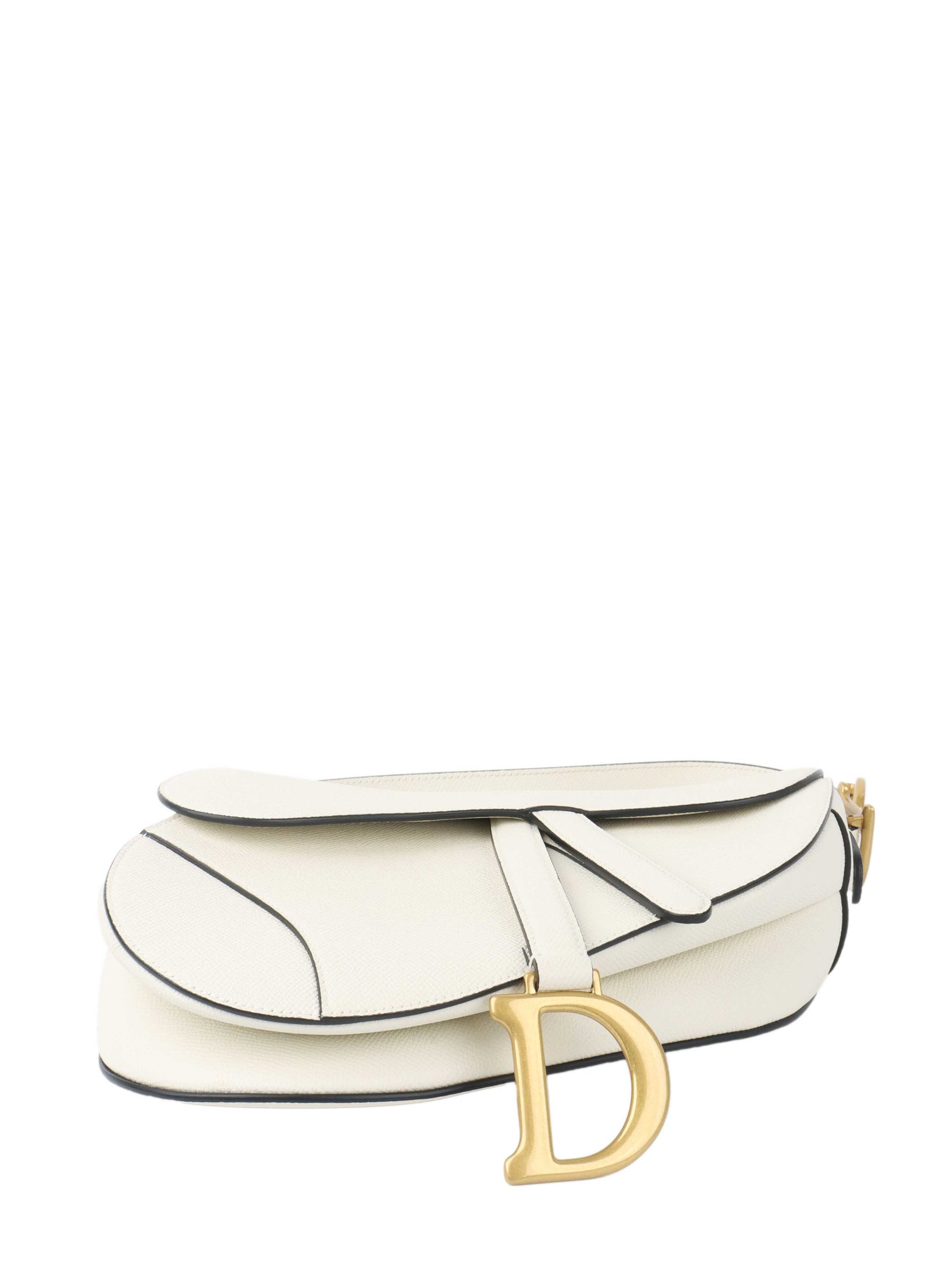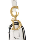Elegant and iconic, the Dior White Saddle Bag showcases the legendary curved silhouette with an asymmetrical flap and signature 'D' stirrup charm. Rendered in pristine white grained calfskin, it’s accented by polished silver-tone “CD” hardware on either side for instant luxury appeal. The versatile top handle and removable, adjustable shoulder strap allow for shoulder, crossbody, or handheld wear. Compact yet statement-making, this refined design carries essentials with style—perfect for adding equestrian-inspired flair to both daytime and evening ensembles.