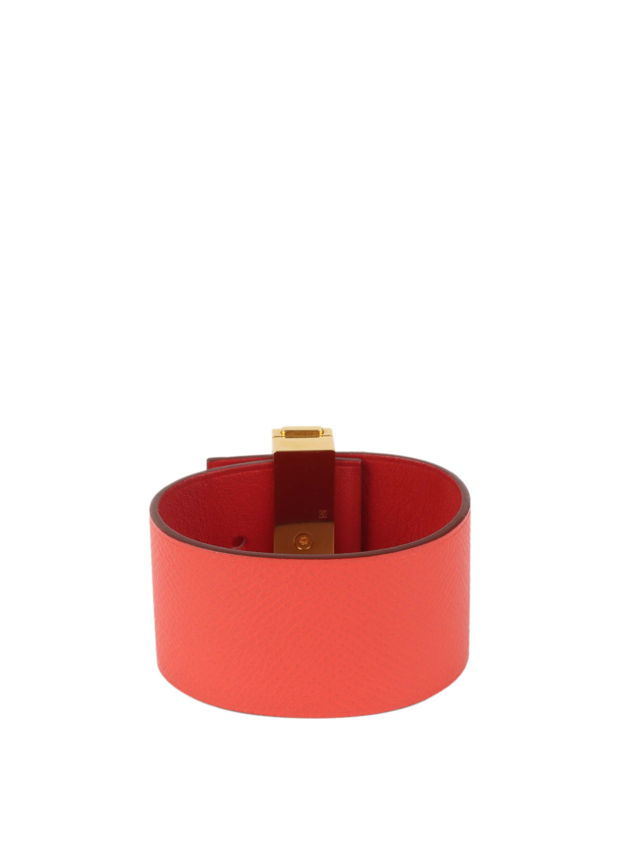 Hermes Rouge Wide Leather Bracelet.