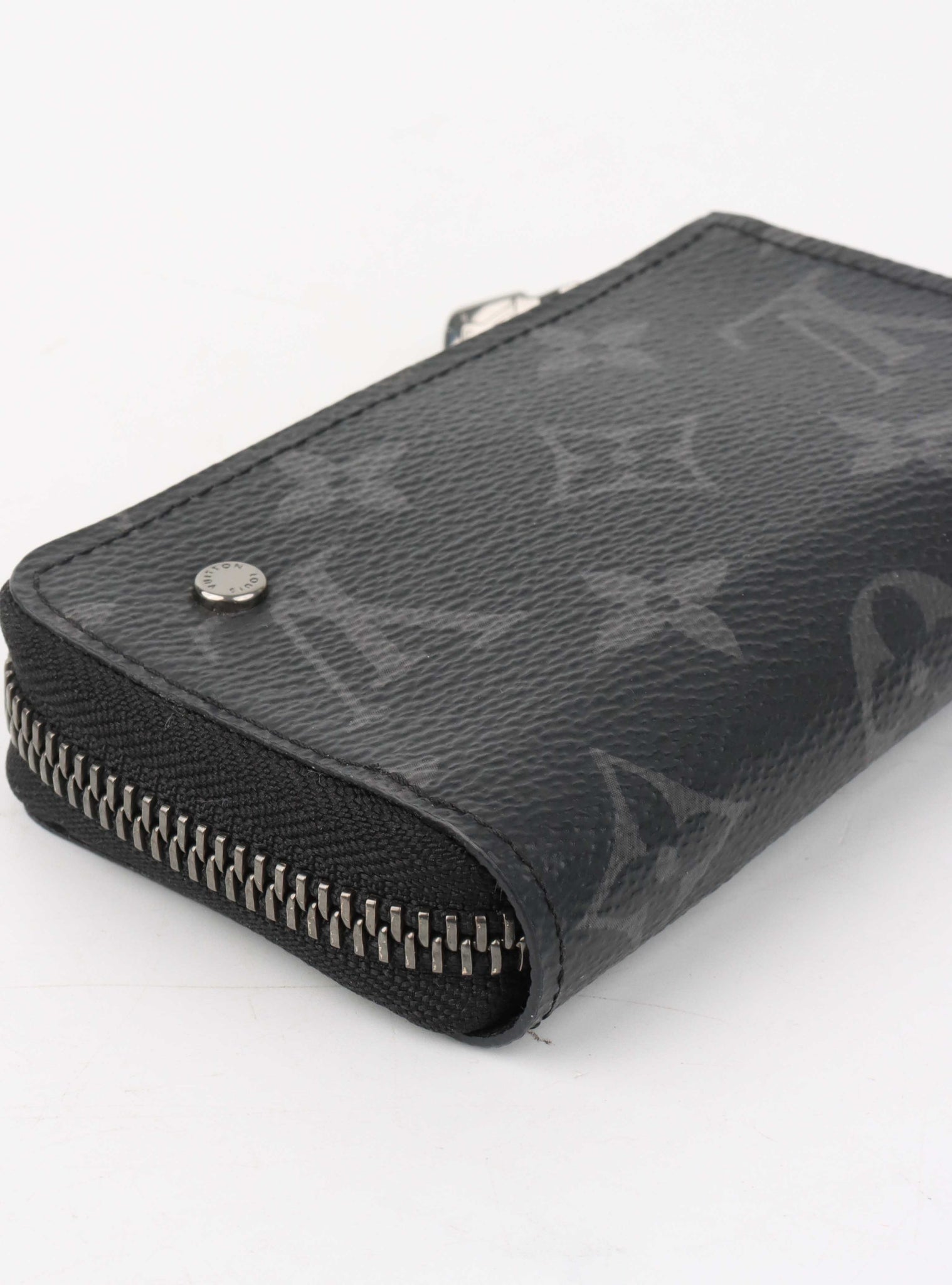 The Louis Vuitton Black Monogram Eclipse Coin Case is a sleek and compact accessory designed for everyday convenience. Made from durable Monogram Eclipse canvas in black and grey tones, it features a secure zip-around closure to keep coins, keys, or small essentials safe. The minimalist design fits easily into pockets or bags, offering both style and practicality. With its refined aesthetic and functional size, this coin case is a versatile piece for those who appreciate understated luxury.