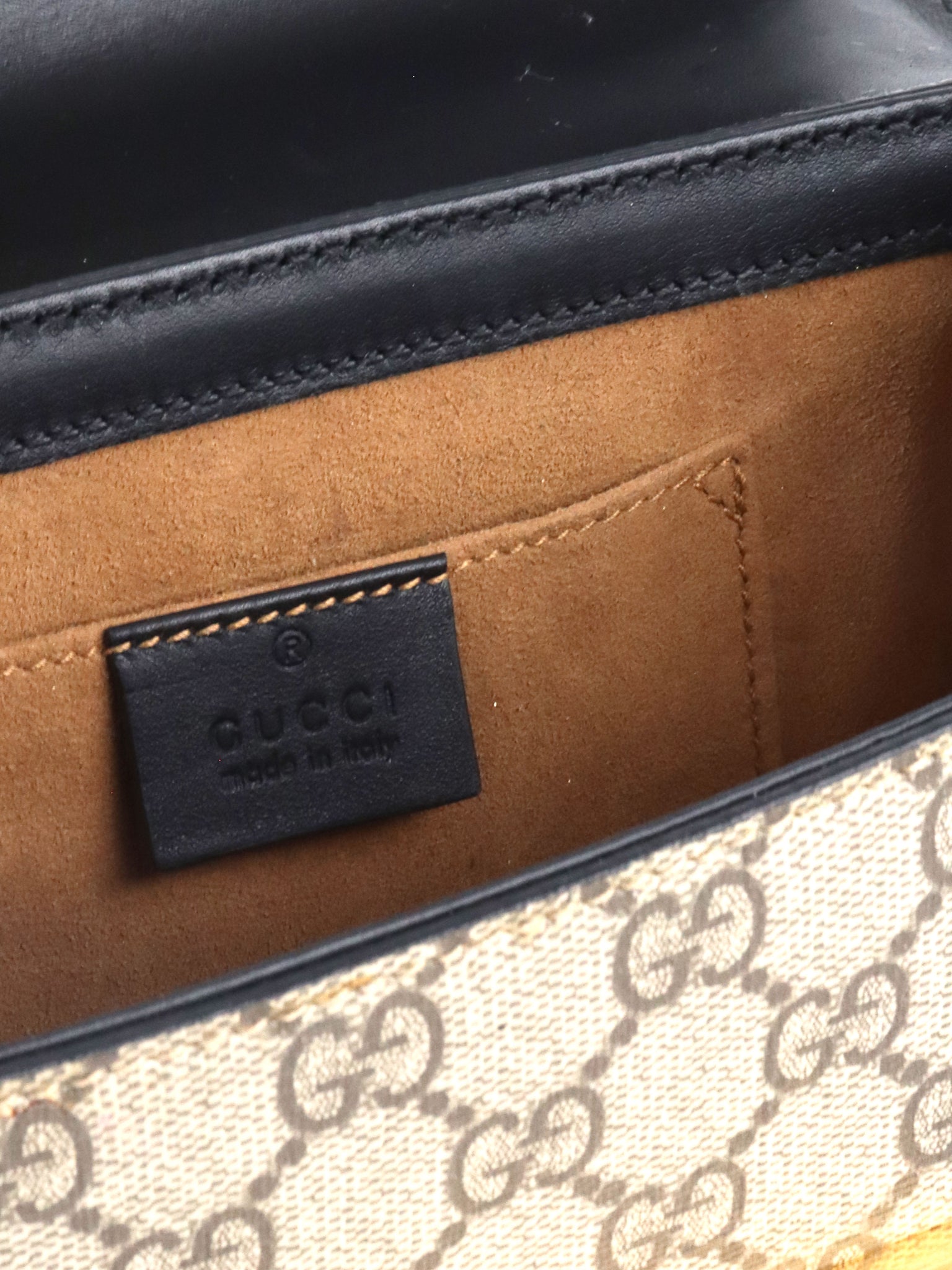 Material : GG canvas, smooth black leather