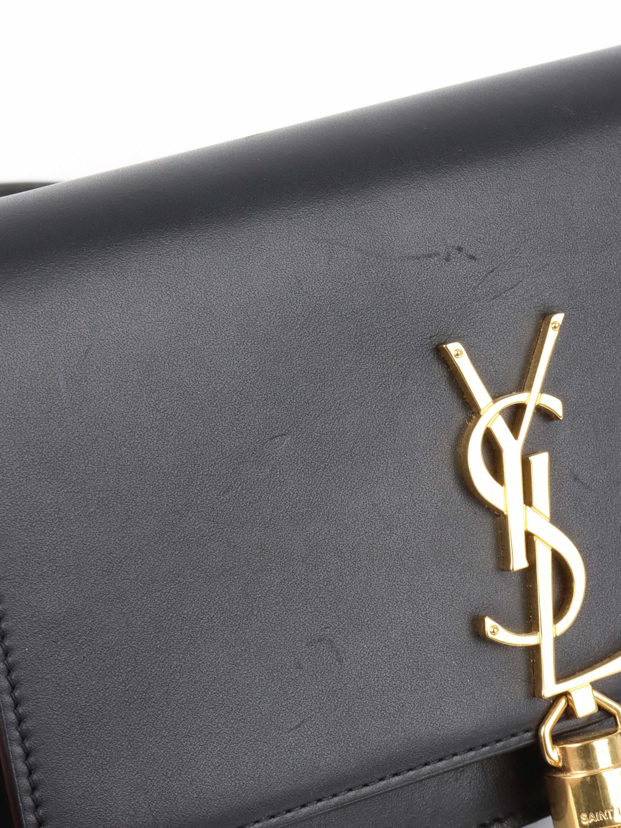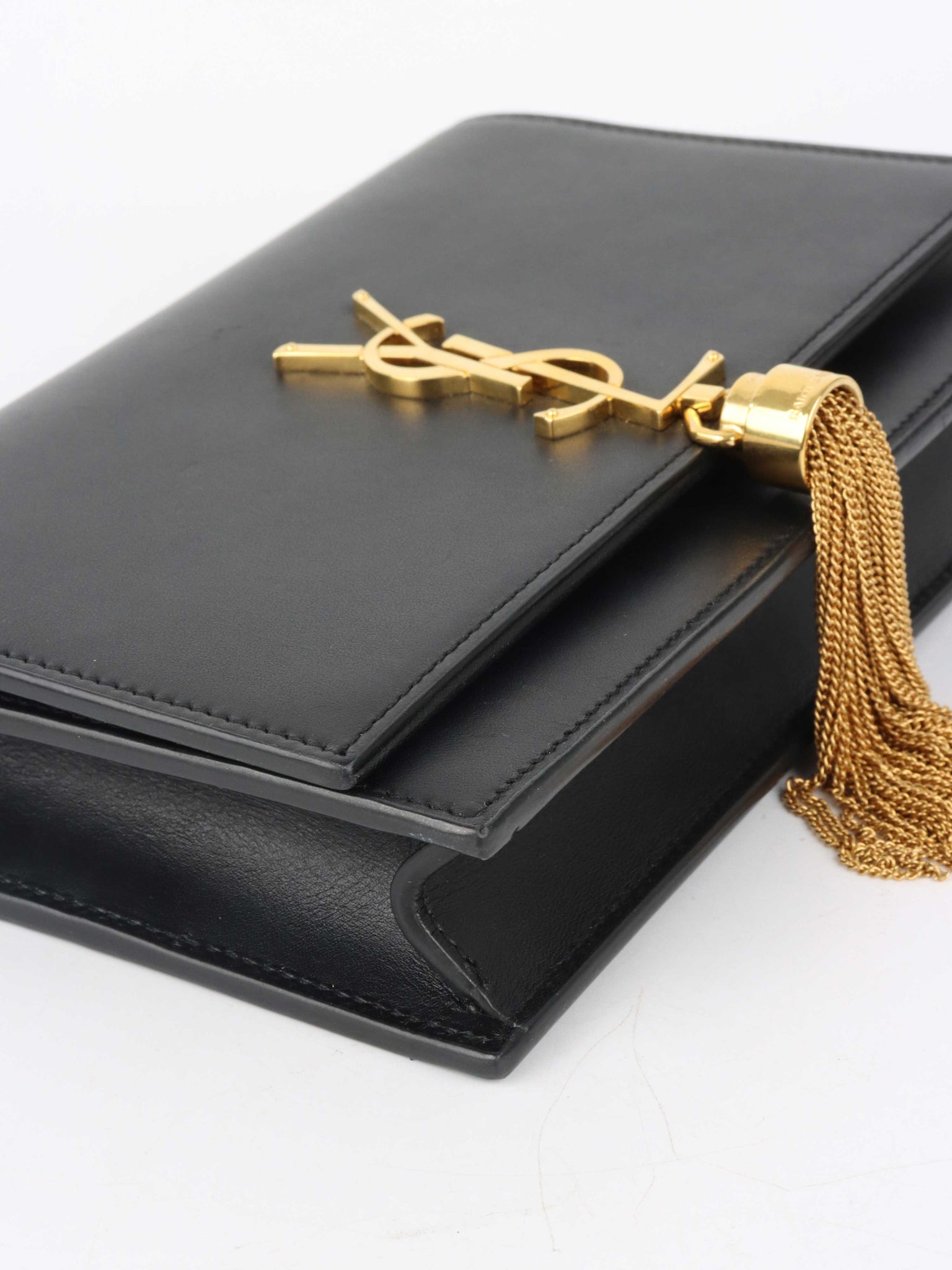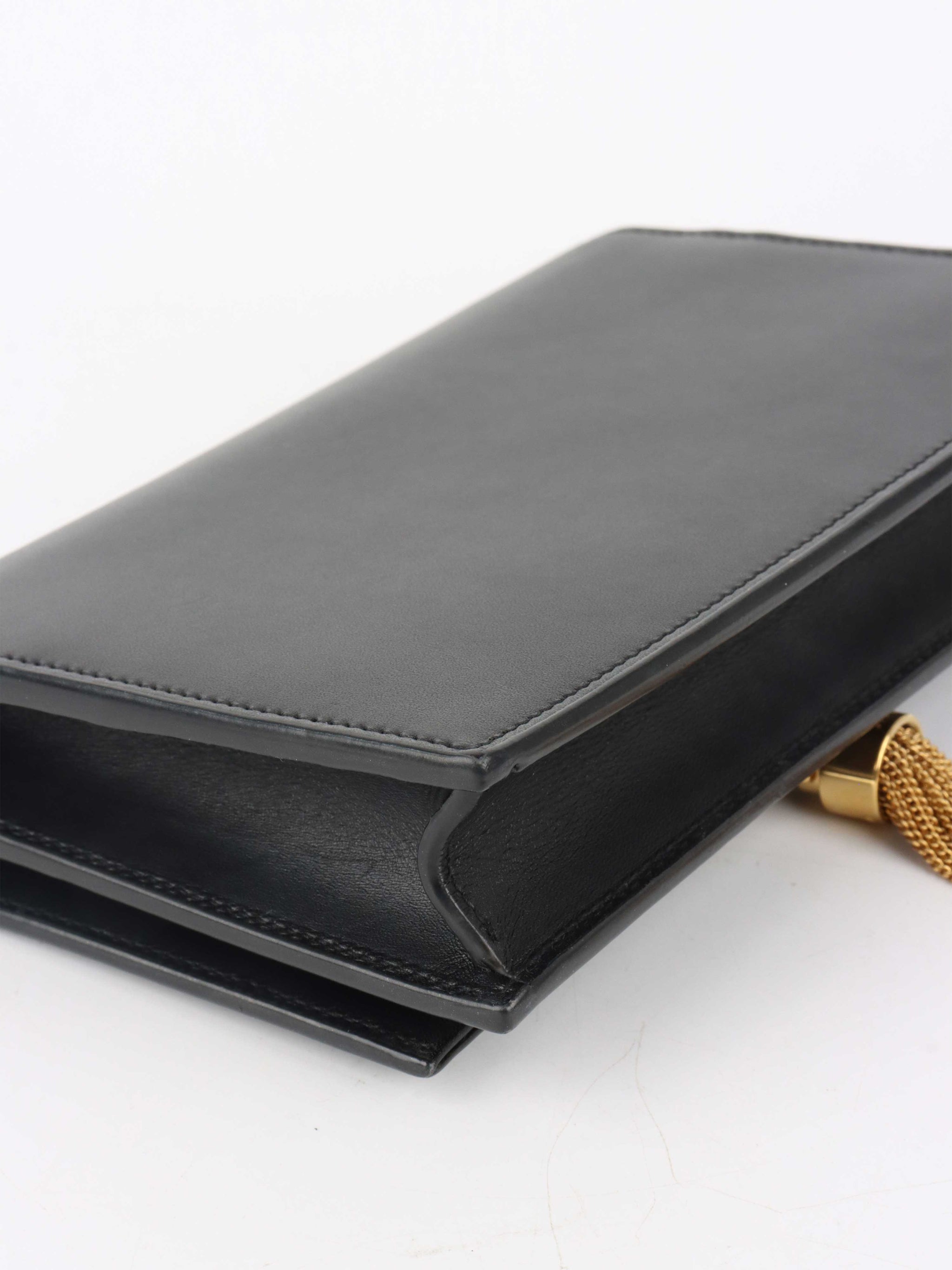 Saint Laurent Small Black Kate Wallet on Chain with Gold Tassel